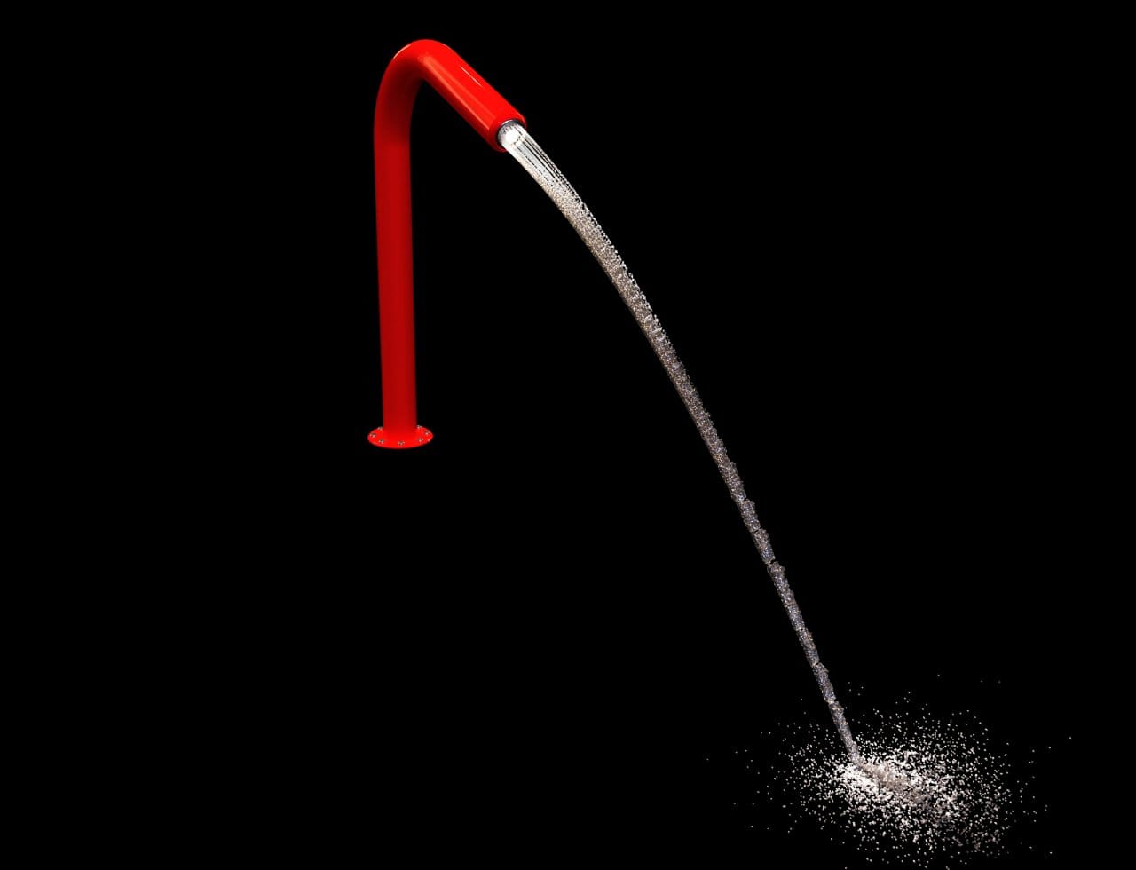 Beleucheteter Farbiger Universal-Wasserspeier 114 Focus Spray LEDWasserspeier aus gebogenem dickwandigem Edelstahlrohr (min. 114 mm) mit austauschbarer Spezialdüse und Universalfußflansch. Biegung ausgeführt auf Biegeautomaten ohne Wellen und ohne Einschweißbögen.